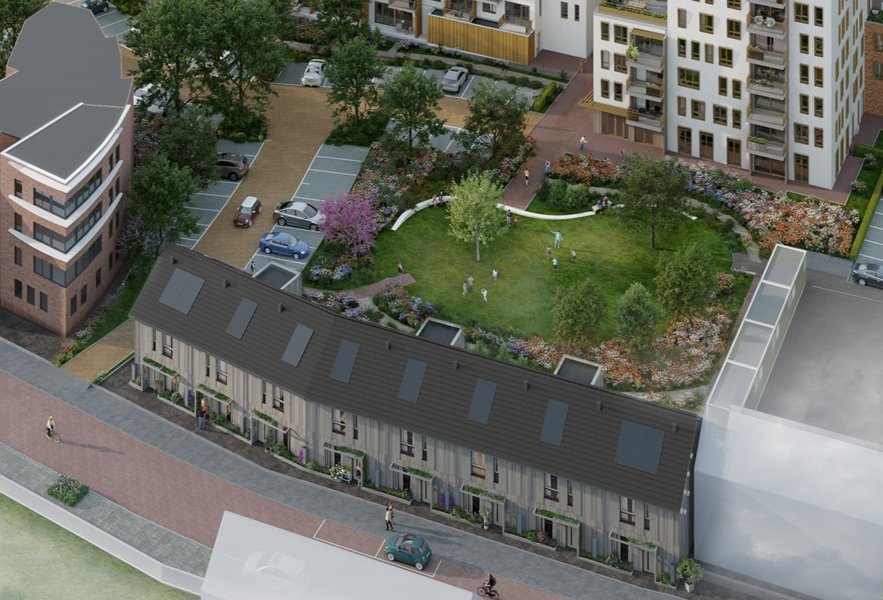 Elke woning beschikt over een eigen tuin die grenst aan de gezamenlijke binnentuin. Zo woon je midden in de stad, met groen direct om je heen.